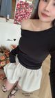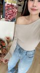 奶油日月斜肩上衣